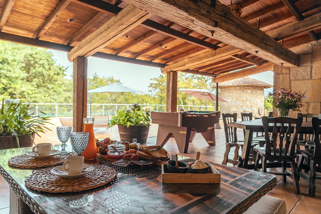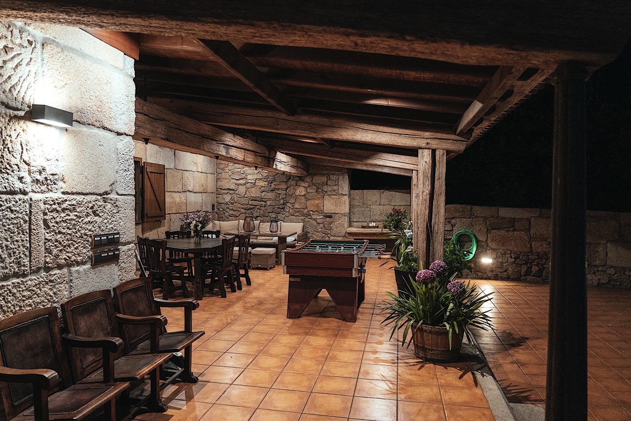Finca O Mermeleiro es una encantadora casa rural situada en Vilagarcía de Arousa, a pocos kilómetros de Sanxenxo y de los principales puntos turísticos de Galicia. Rodeada de un terreno de 4.000 m², esta finca combina la tranquilidad del entorno natural con todas las comodidades necesarias para disfrutar de unos días de descanso en familia. Su ubicación es ideal: cercana al núcleo urbano y a todos los servicios, pero lo suficientemente apartada para garantizar la desconexión y la relajación. La casa cuenta con tres habitaciones y tres baños, cada uno decorado con cuidado y pensado para el confort de sus huéspedes. La habitación principal dispone de cama de matrimonio, televisión de 55 pulgadas y un baño propio, mientras que las otras dos habitaciones ofrecen camas individuales y televisores de 50 pulgadas, con la opción de añadir un colchón hinchable doble. Los baños están totalmente equipados, incluyendo uno ubicado en el exterior, que añade un toque especial y diferente. El corazón de la casa es la cocina, totalmente equipada, que se comunica con el salón a través de una isla, creando un espacio amplio y acogedor donde compartir momentos especiales. La mesa extensible permite reunir a toda la familia o al grupo de amigos para disfrutar de largas comidas en un ambiente familiar y cálido. En el exterior, la finca ofrece un auténtico paraíso para el ocio y la diversión. Podrás relajarte en la zona chill out con cómodos sofás, jugar al futbolín o disfrutar de los juegos de mesa disponibles. Además, hay un mini campo de fútbol y una zona de asado completamente equipada, con lavabo y utensilios, perfecta para organizar comidas al aire libre. La finca también es apta para mascotas, contando con dos jaulas exteriores grandes para su comodidad. Finca O Mermeleiro combina el encanto del estilo rural con la comodidad moderna, ofreciendo a sus huéspedes la posibilidad de disfrutar de la naturaleza, la tranquilidad y la cercanía a playas, senderos y rincones turísticos de Galicia. Es un lugar pensado para quienes buscan desconectar sin renunciar al confort, donde cada detalle invita a sentirse como en casa y a crear recuerdos inolvidables.